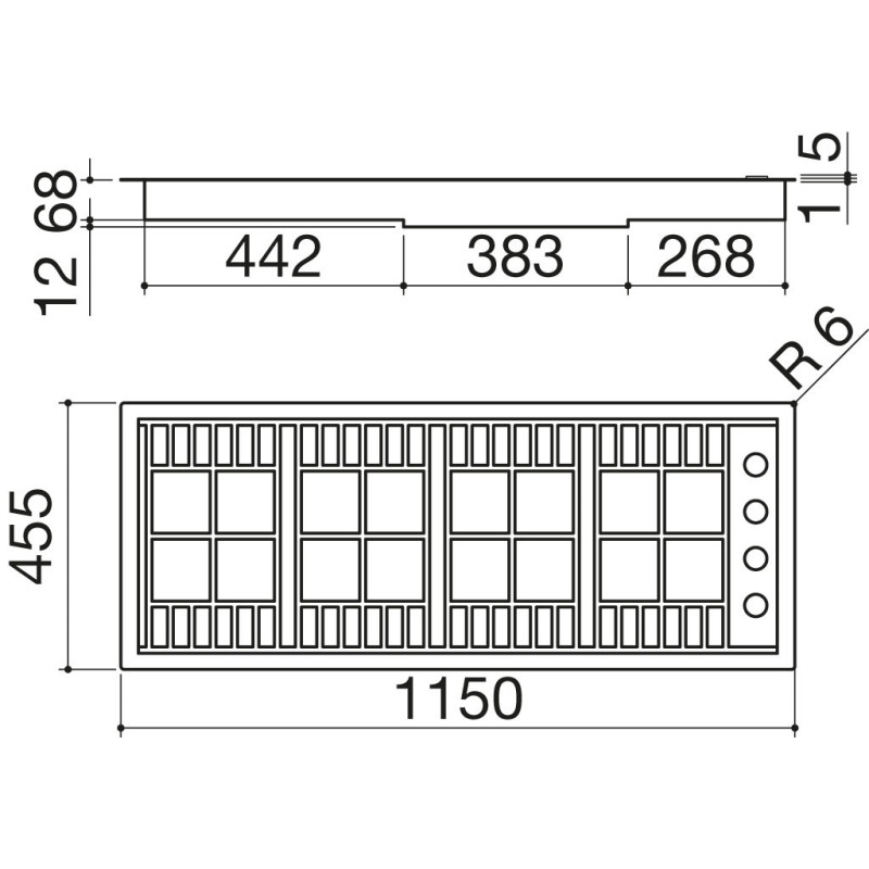 - acciaio inox AISI 304 di spessore elevato- comandi: superiori laterali integrati- incasso: 113×43,5 cm- filotop: v. sito webPotenze bruciatori:- 1 ausiliario: 1 kW- 1 semirapido: 1,75 kW- 1 rapido: 3 kW- 1 doppia corona: 3,5 kWBarazza 1PLB3T. Colore del prodotto: Nero, Acciaio inox, Posizionamento dell'apparecchio: Da incasso, Tipo di piano cottura: Gas. Tipo di controllo: Manopola, Posizione di controllo: In alto a destra. Larghezza: 1150 mm, Profondità: 455 mm, Altezza: 86 mm. Larghezza imballo: 1200 mm, Profondità imballo: 520 mm, Altezza imballo: 160 mm