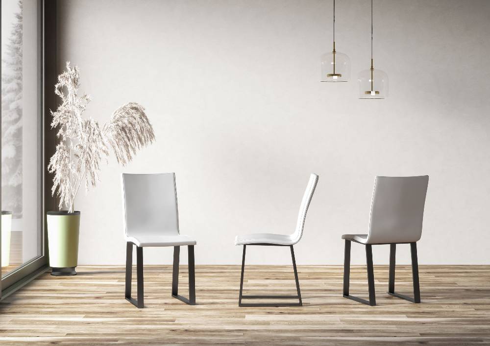 Sedia Baffy. Sedia a slitta senza braccioli Baffy Soft, un modello comfortevole e di design con gambe in metallo verniciato antracite, scocca in legno rivestita in similpelle leggermente rivestita e disponibile in tre diverse colorazioni. Una sedia originale e moderna nel design, perfetta per un soggiorno, salotto, sala da pranzo o una cucina. Ideale da abbinare a tavoli modelli Tecno, da cui è ispirato nella struttura delle gambe, e più in generale è ottima da usare in combinazione con modelli più moderni o in stile industrial. Le gambe in metallo sono saldate alla piastra sottoseduta, sinonimo di grande stabilità e solidità. La eduta in similpelle è facile da pulire, basta una passata di un semplice panno umido. Non impilabile. La sedia è fornita smontata. Il montaggio consiste semplicemente nell’avvitamento del basamento alla struttura con la ferramenta fornita in dotazione. Dimensioni: L.40/44 P.42 H.86 cm seduta 40/44×37 cm schienale H.44 cm altezza seduta da terra: H.44 cm. Prodotto Itamoby