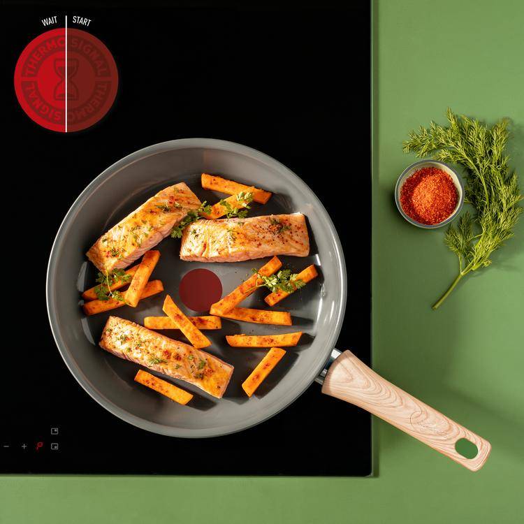 Cottura ottimale con un minore impatto ambientale. Vivissima unisce innovazione e un ridotto impatto ambientale per un modo moderno di cucinare, pensato per essere ecosostenibile. Scopri un'antiaderenza ottimale e una cottura sana a basso contenuto di grassi, grazie al moderno rivestimento antiaderente in ceramica, progettato per durare nel tempo. Facile da pulire e compatibile con tutti i tipi di piano cottura, questa linea garantisce risultati ottimali e deliziosi grazie all'indicatore di temperatura Thermo-Signal e presenta un elegante design realizzato in Francia, oltre a una garanzia di 5 anni.Il set è composto da una padella 20 cm, una padella 24 cm e una padella 28 cm.