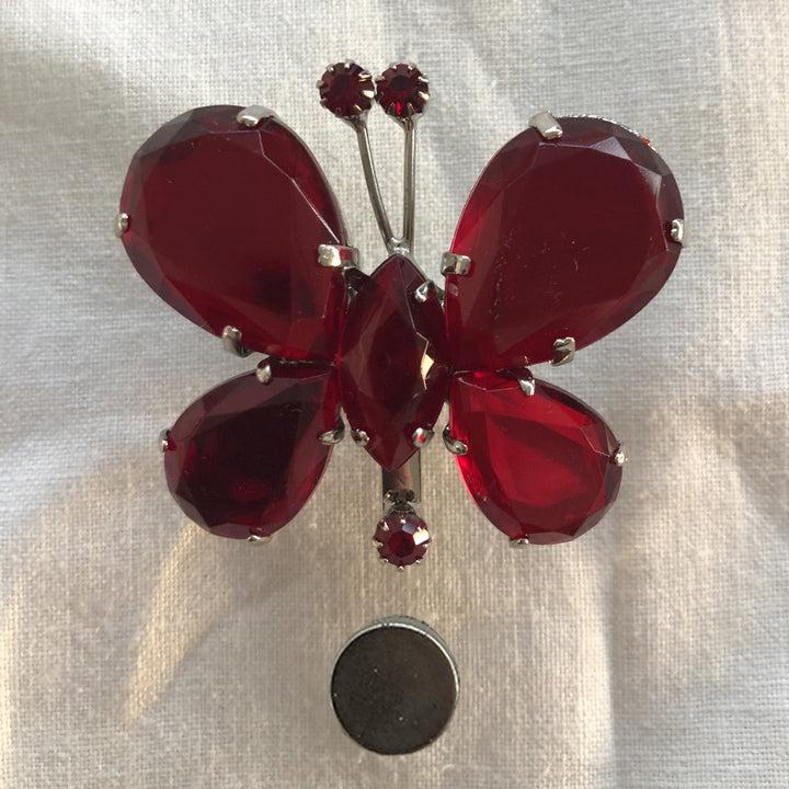 Calamita a forma di farfalla dall'ottimo rapporto qualità prezzo, con base in metallo e pietre colorate come decorazione.