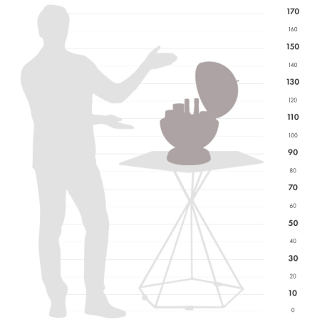 Come una conchiglia che schiudendosi mostra la purezza e la meraviglia della sua perla, questo globo da tavolo si apre rivelando i tuoi accessori bar e le tue bottiglie di liquori preferite, lasciando di stucco qualsiasi ospite. Il vano interno può infatti ospitare fino a 2/3 bottiglie e 9 bicchieri, per un dopocena tra amici degno delle migliori serate in compagnia.